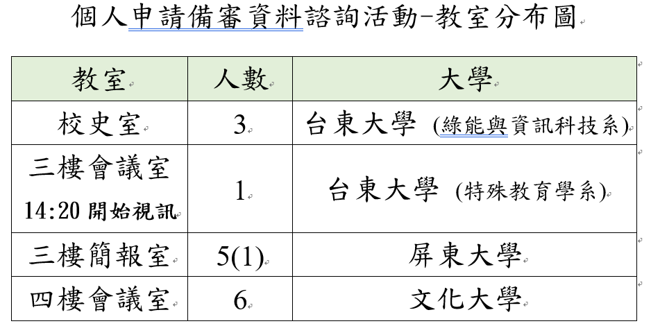 台東大學第六節會另開一間會議室,與特殊教育學系教授視訊面談,