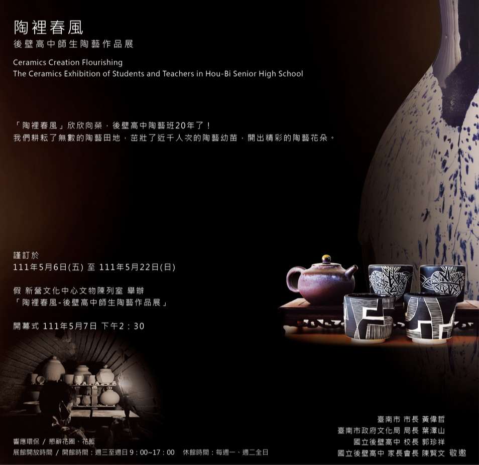 二、謹訂於111年5月6日至111年5月22日,假新營文化中心文物陳列室舉辦,開幕式111年5月7日(星期六)下午2時30分。
