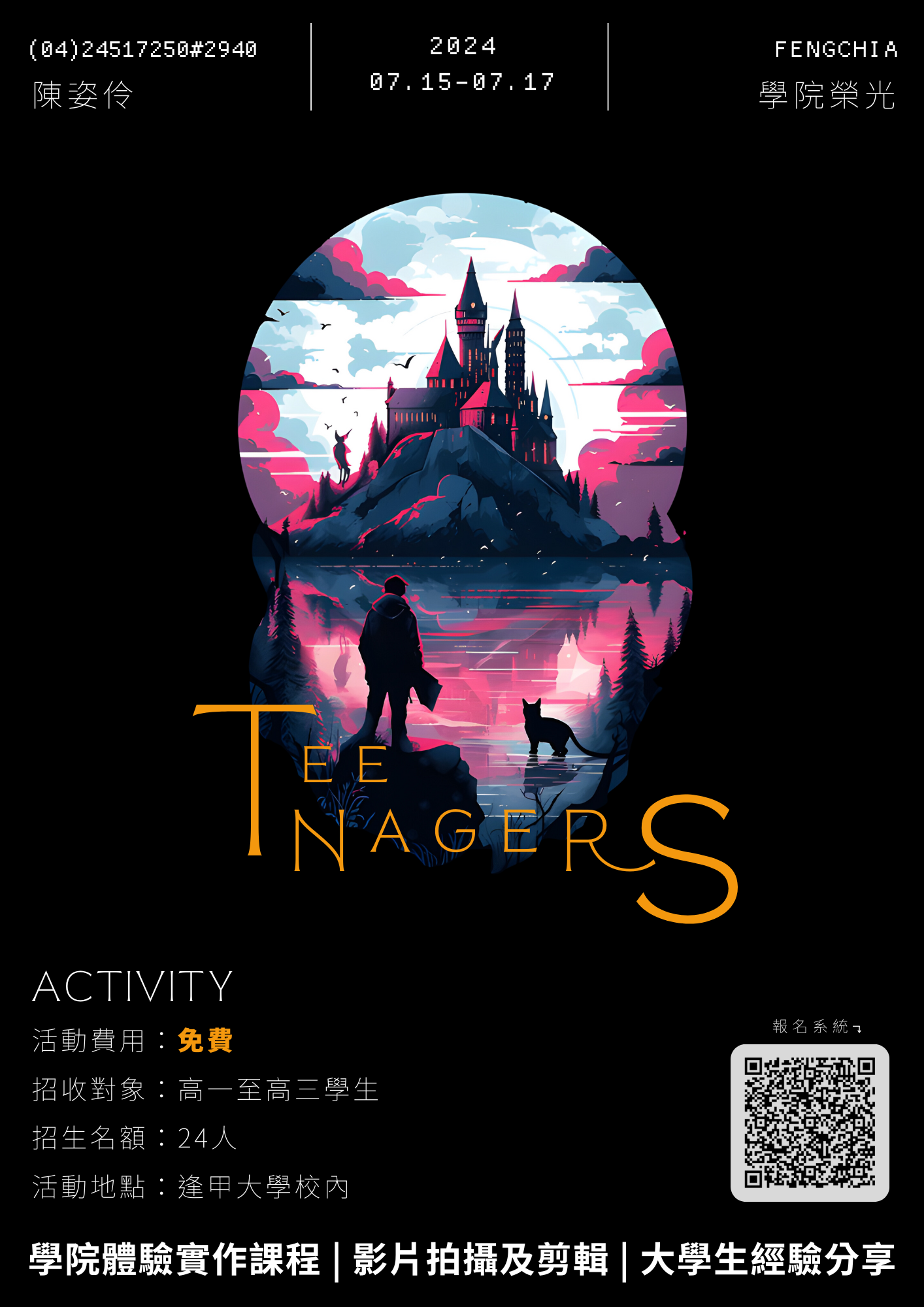主旨:本校招生事務處社區發展志工隊謹訂於113年7月15日(星期一)至7月17日(星期三)辦理「TEENAGERS:學院榮光」高中生營隊,敬請貴校轉知活動訊息並推薦符合資格之學生報名參加,請查照。