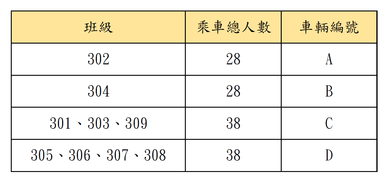 ☝️請參與同學自行留意各班分車表,務必在時間內上正確車輛。