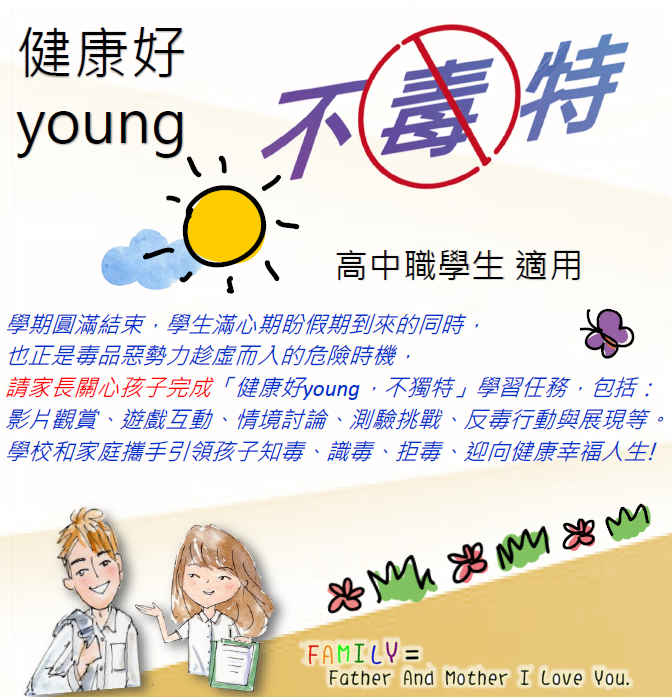 教育部114年暑假反毒學習單各位同學大家好:暑假將至,教育部為提醒同學們遠離毒害,特別製作【反毒學習單】,提醒毒害可能就在身邊出沒!