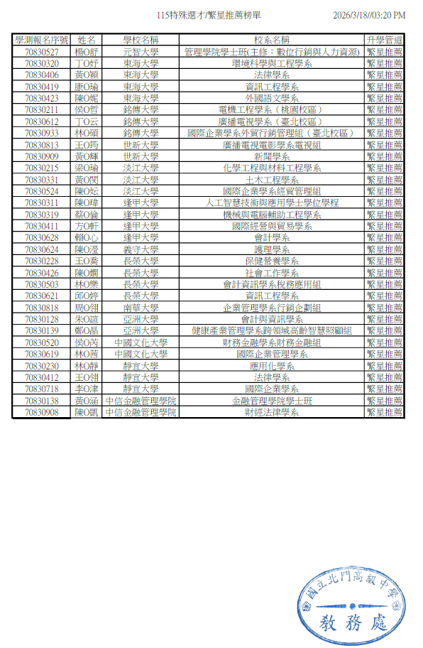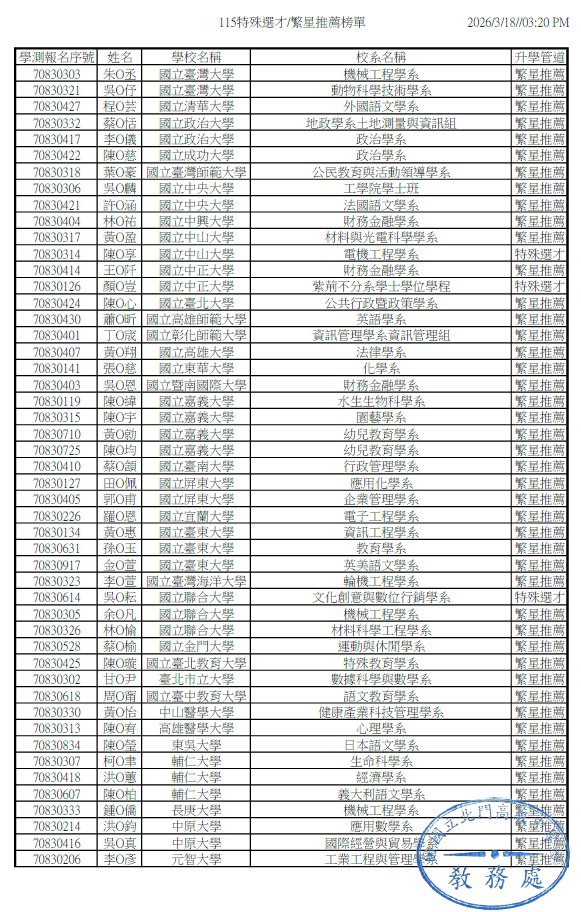 提醒:若想放棄繁星,請在期限內上甄選會網站放棄