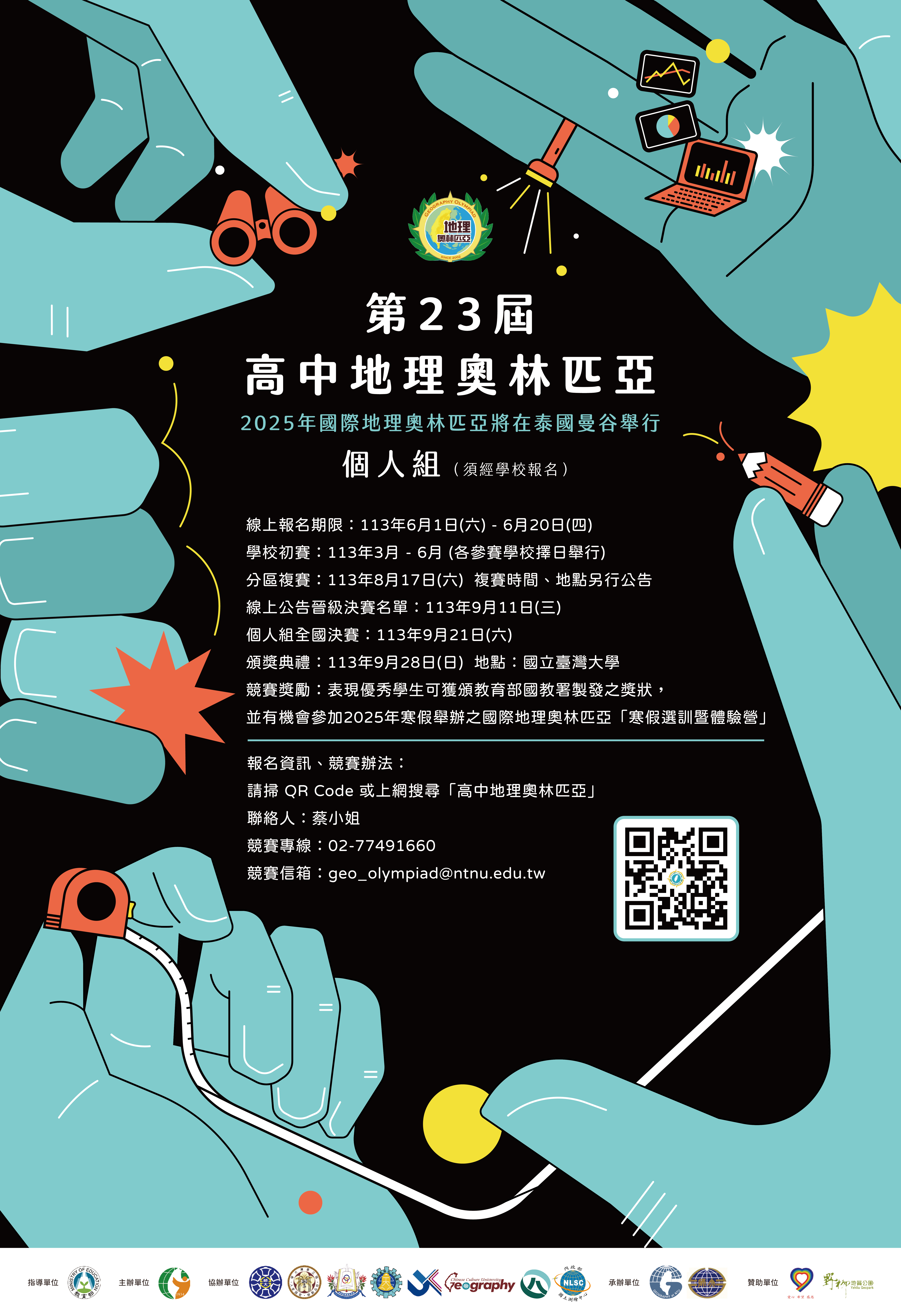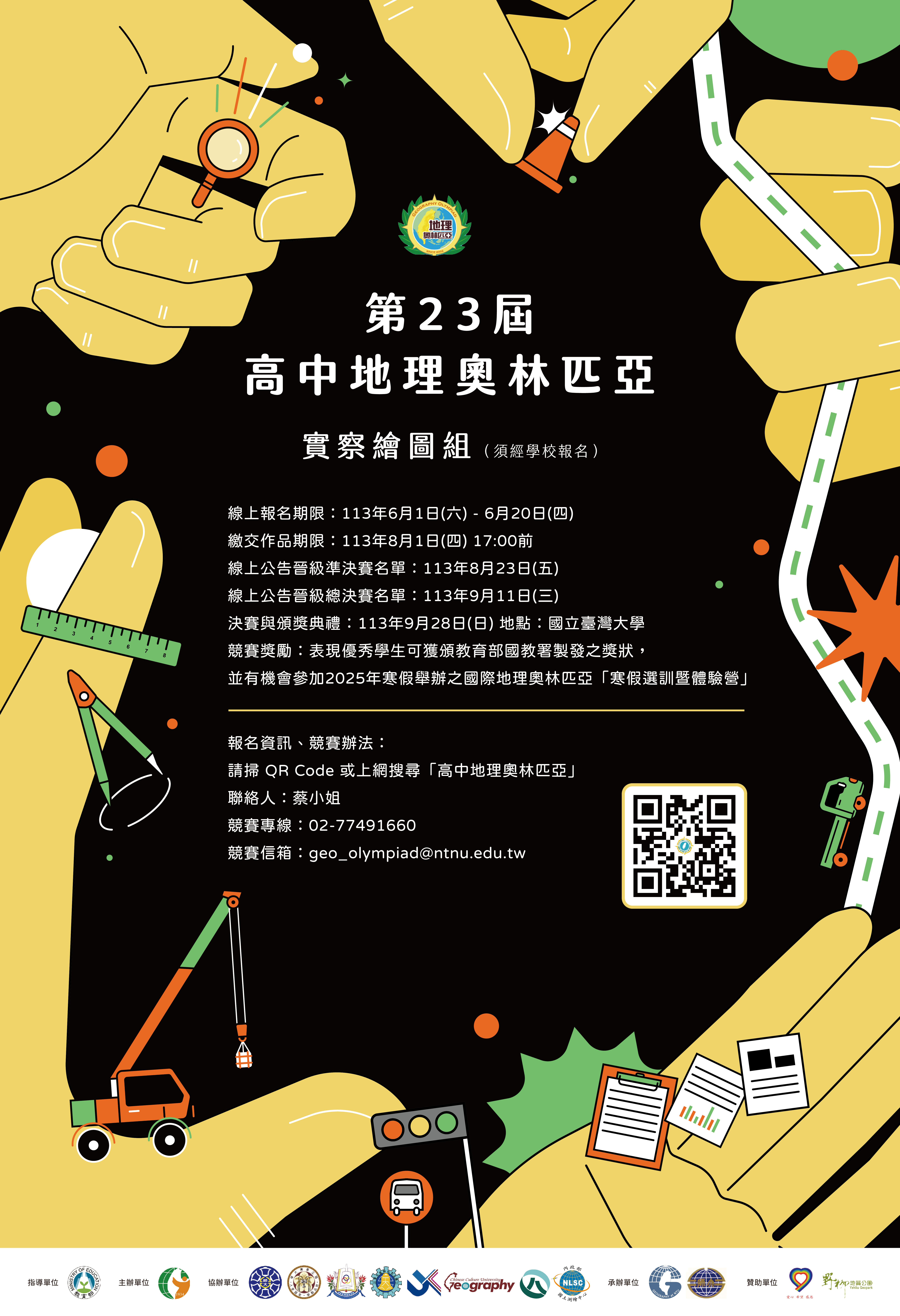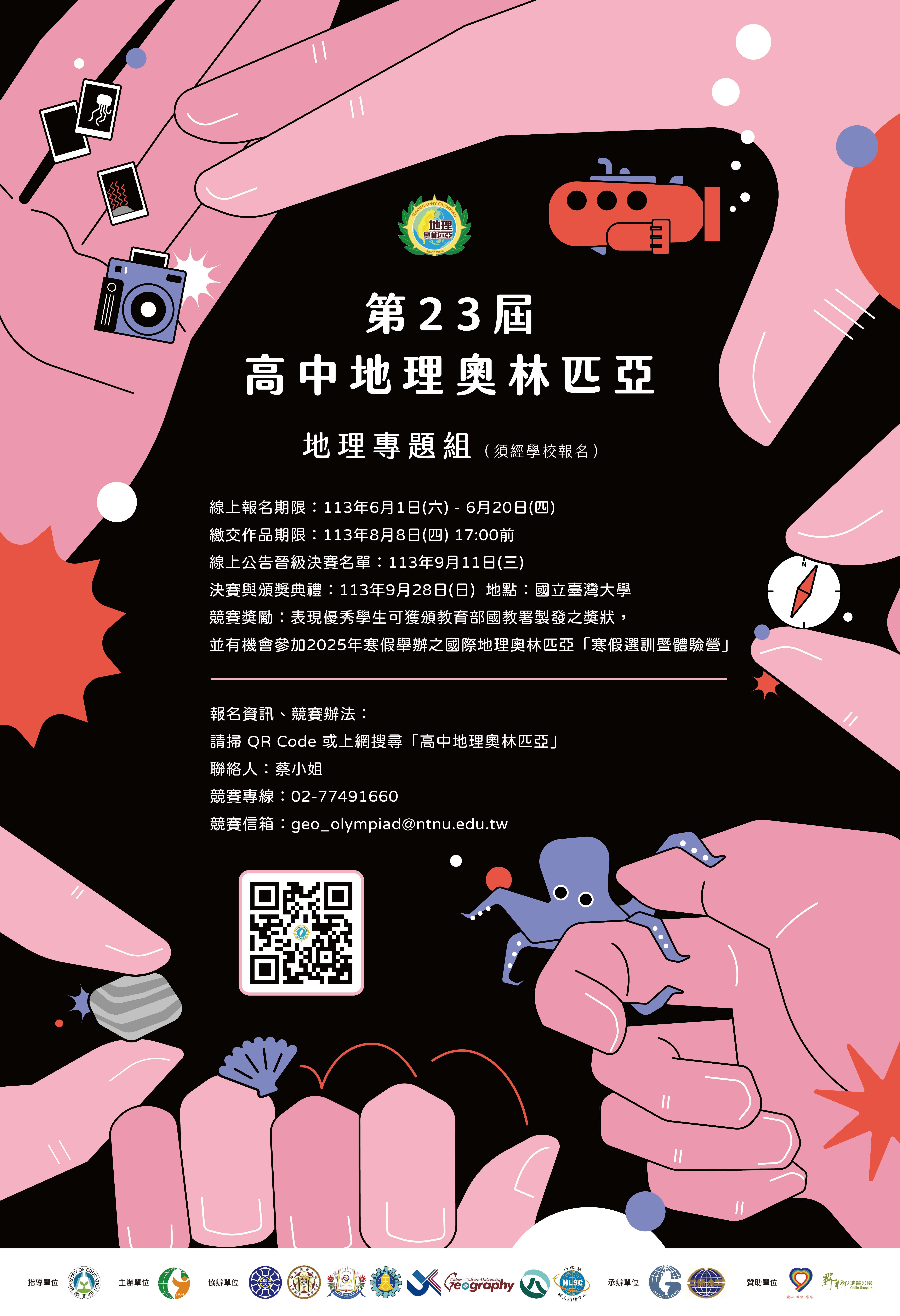 ◼ 地理專題組線上繳交作品:民國113年8月8日(四)17:00截止。