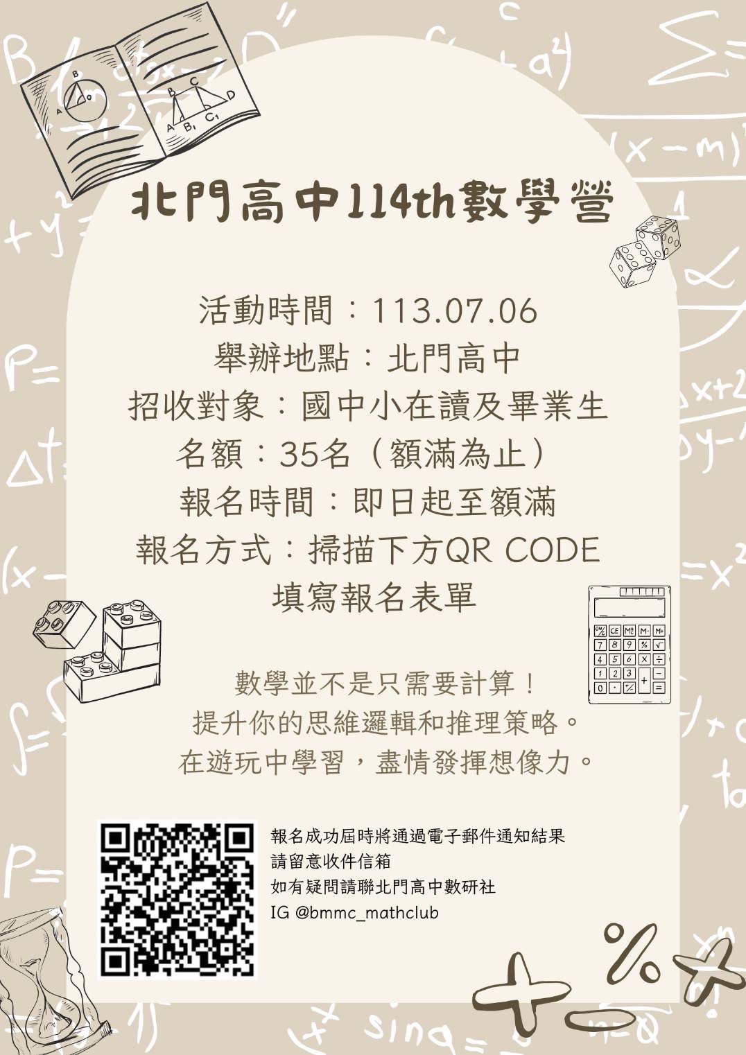 由數學研究社的同學一起努力辦理的營隊,歡迎報名參加,