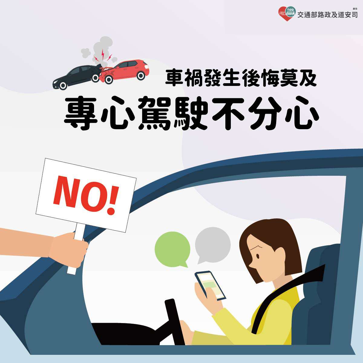 本月交通安全宣導主題:「分心一秒,危險一秒;行車專心,你我安心」