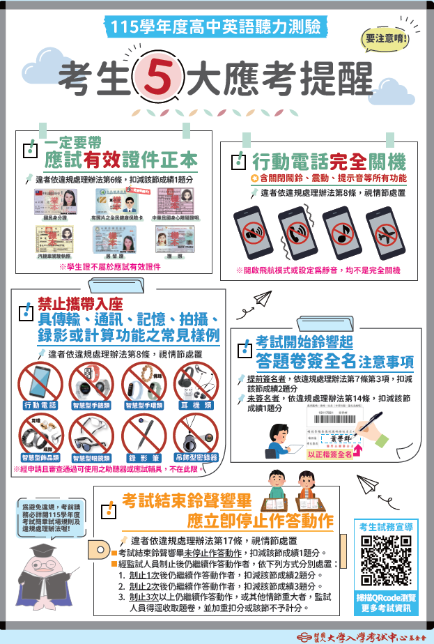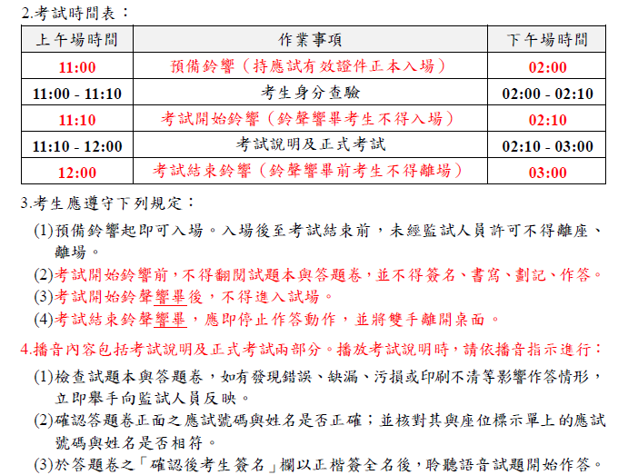 4.上述資訊可登錄考生專區查詢,謝謝。